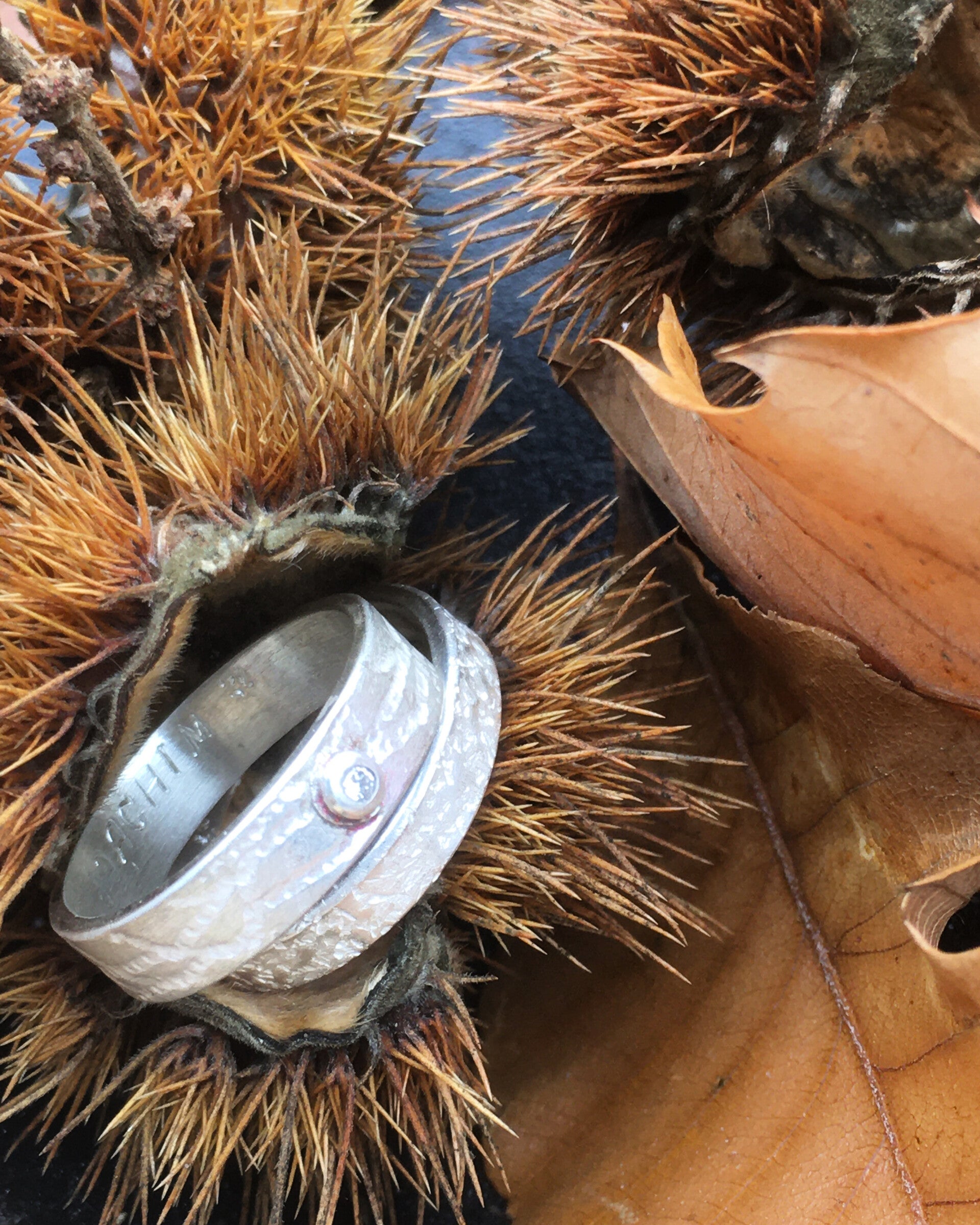 In de binnenkant van de ring kan ik zelf iets in graveren, voor twee namen en een datum kost dit 15 euro per ring.